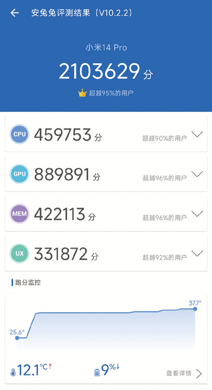 ▲《安兔兔评测》中小米14 pro获得2102629分
