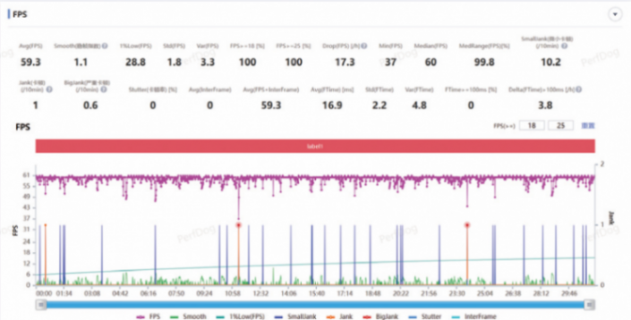 ▲小米14 pro的30分钟璃月场景跑图平均帧率达到59.3fps