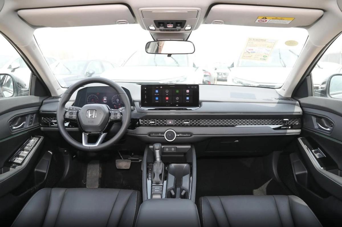 内饰方面,全新雅阁的内饰已经与家族多款车型保持一致,中控台整体平整,并加入了更多横向线条延伸。软性材质包裹的台面比较有立体感,台面前端带有镂空中网,而出风口则均被隐藏其中,让整个座舱看起来比较简洁。台面中部则配有12.3英寸的悬浮式中控屏,仪表区也升级为液晶屏,让科技感明显提升。配置上,全新雅阁进行了升级,内置的honda connect智联系统功能配置丰富,同时配上honda sensing辅助系统,让整车在智能化和主动安全配置上都都有较大程度的提升。