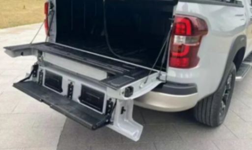 新车货厢尾门设计也很有意思,除了正常的开启方式,还可以形成台阶,可以坐在上面钓鱼,也方面女性用户攀爬,总之实用性做得很好。
