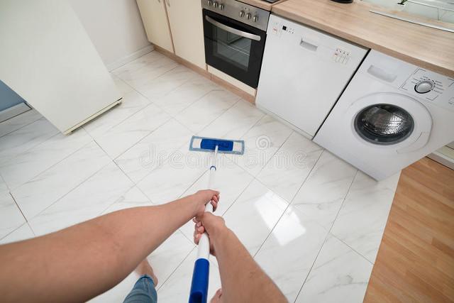 4、厨房的地板屯积油垢,拖不干净怎么办?