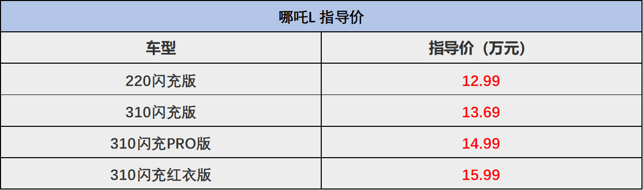 本次发布的哪吒l车型共有5款,包括4款增程式动力和1款纯电版车型,不过其仅公布了增程版车型的价格区间为12.99万至15.99万,需要注意的是,其指导价12.99万的220 闪充版,要在今年8月上市,而如果在5月31日前下订15.99万元的310闪充红衣版将可享受现金优惠5000元。