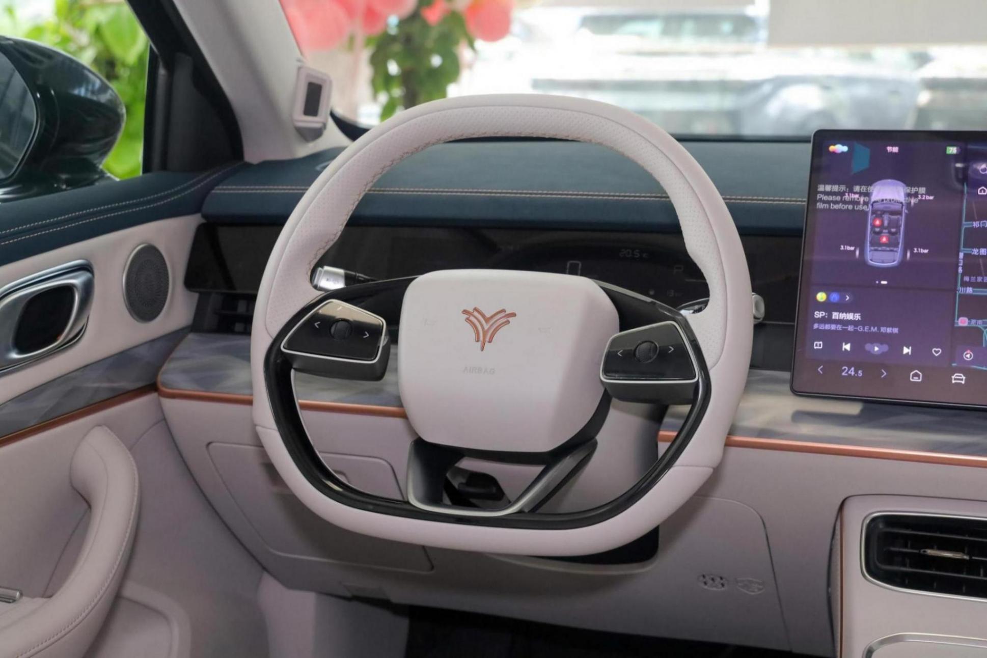 既然主打家用市场,那么车内的布局和舒适性才是重点。进入哪吒l的车内,一股熟悉的味道扑面而来,不得不说中控两块15.6英寸的连屏让我想起了理想系列的车型,不过哪吒l在方向盘前方还是保留了传统的液晶仪表盘。