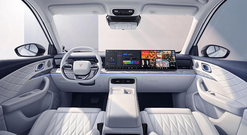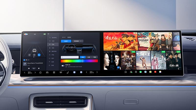 中控屏是搭载了京东方双15.6英寸超窄边的全高清屏“大彩电”,采用高通骁龙8155p高性能芯片。京东方ltps高端屏拥有1920*1080 fhd全高清分辨率,6.7mm窄边、12mm极致轻薄,铝镁合金边框,兼顾性能、良好的观看效果和触感。