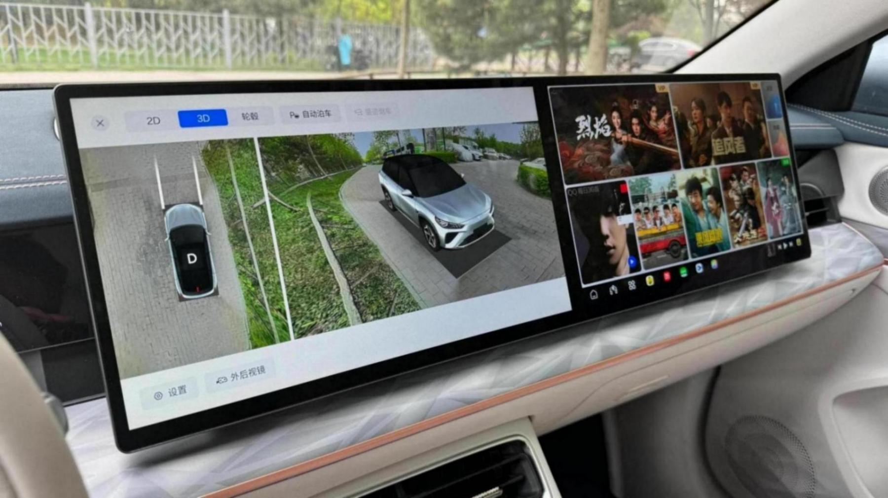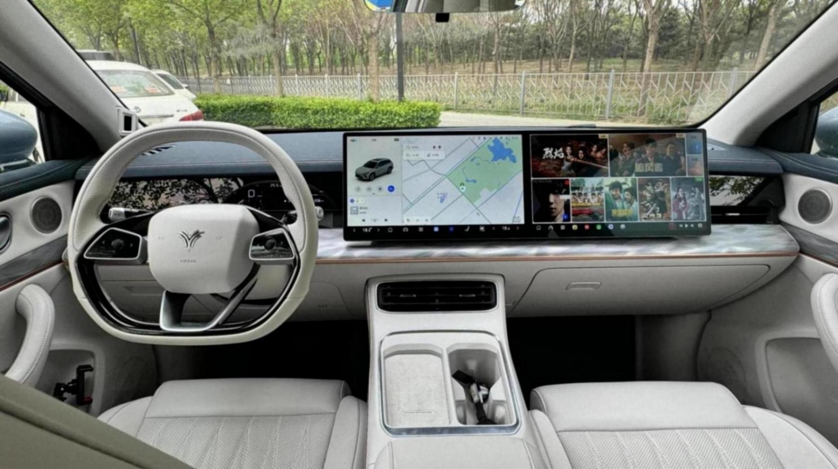 内饰方面,白色内饰配色,年轻有活力。中控台采用细长的内嵌式全液晶表盘,搭配15.6英寸双联屏的设计布局。此外,新车配有包括独立压缩机和双开门的冰箱。