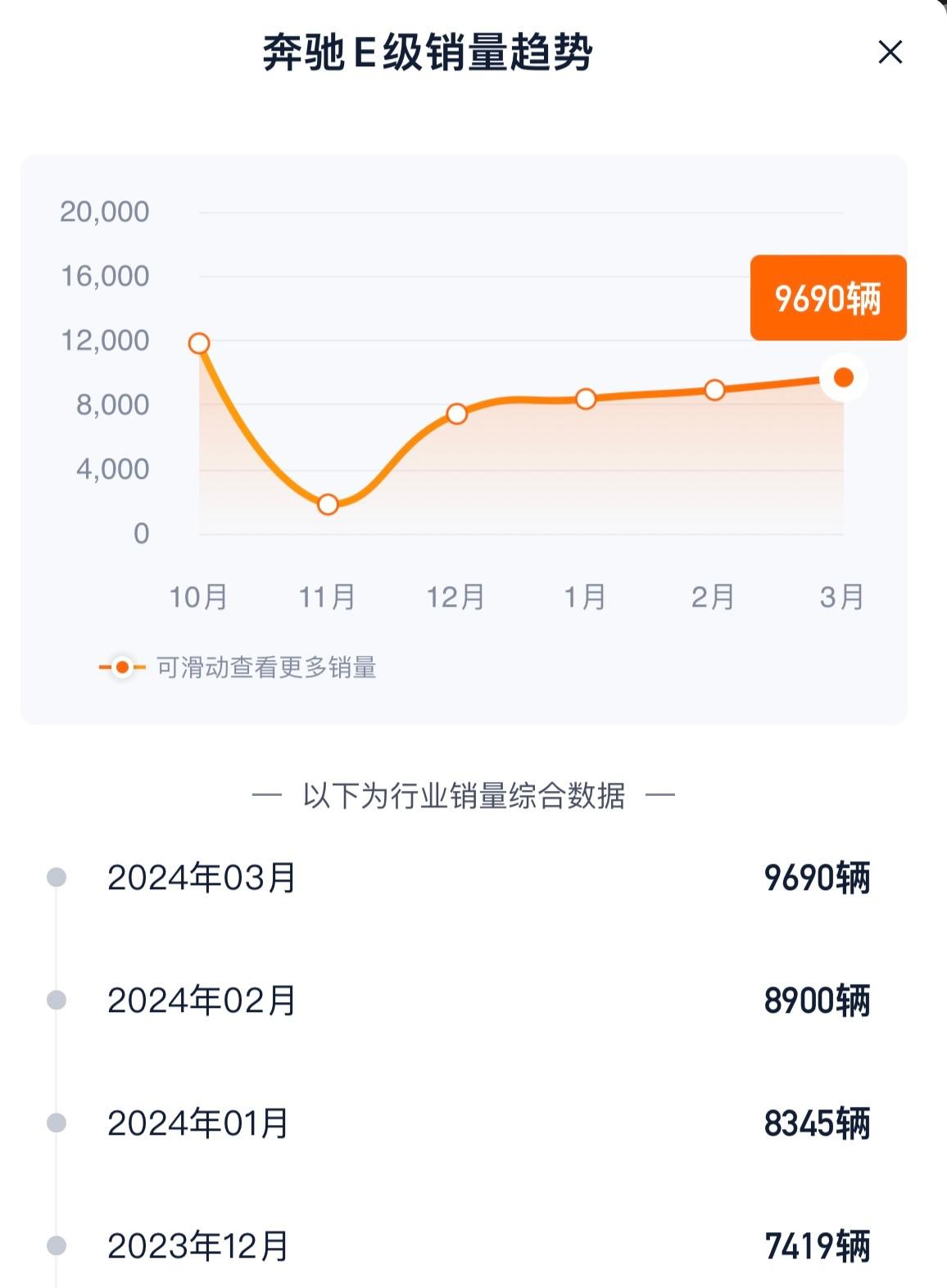 再看看隔壁奔驰,全新e级去年12月上市,销量那是稳步提升,稳定维持在8000 ,眼看3月就快破万了,这还真得谢一下宝马5系送来的机会。