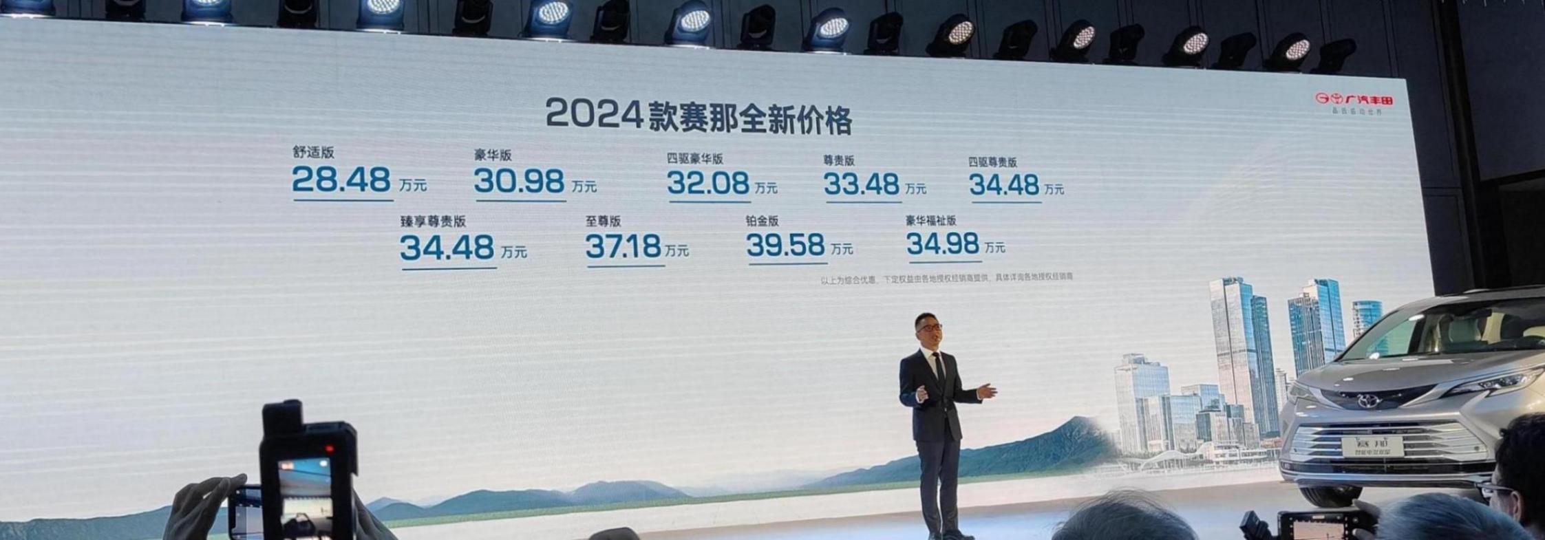 4月23日,广汽丰田官方宣布,旗下的新款丰田赛那sienna上市,新车提供9种配置可选,官方指导价区间为28.48万元-39.58万元。