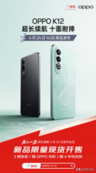 超长续航 十面耐摔”的oppo k12将于4月24日发布,不少消费者对这款内置5500mah大电池、支持100w超级闪充的新机充满期待。为让消费者有机会第一时间入手oppo k12新机,京东携手oppo打造“先人一步”计划,提供新品现货抢先发货,发布会结束后用户就能下单,最快第二天就能收到新手机。现在来京东app搜索“oppo先人一步”即可进入页面预约新机,方便发布会后第一时间下单。
