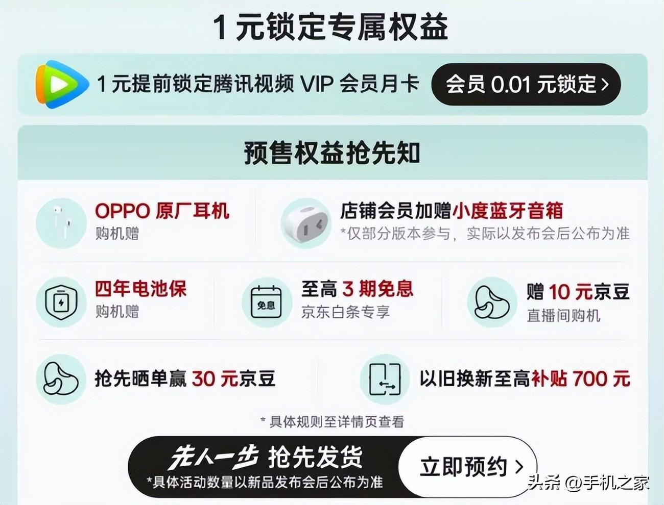 此外,来京东app搜索“oppo先人一步”,进入页面后可0元预约赢耳机。消费者还可花1元提前锁定腾讯视频vip会员月卡,而店铺会员和京东plus会员仅需0.01元即可。此外,消费者参与oppo k12预售可享购机赠oppo原厂耳机、四年电池保、至高3期免息、以旧换新至高补贴700元、部分版本享店铺会员赠小度蓝牙音箱等福利。