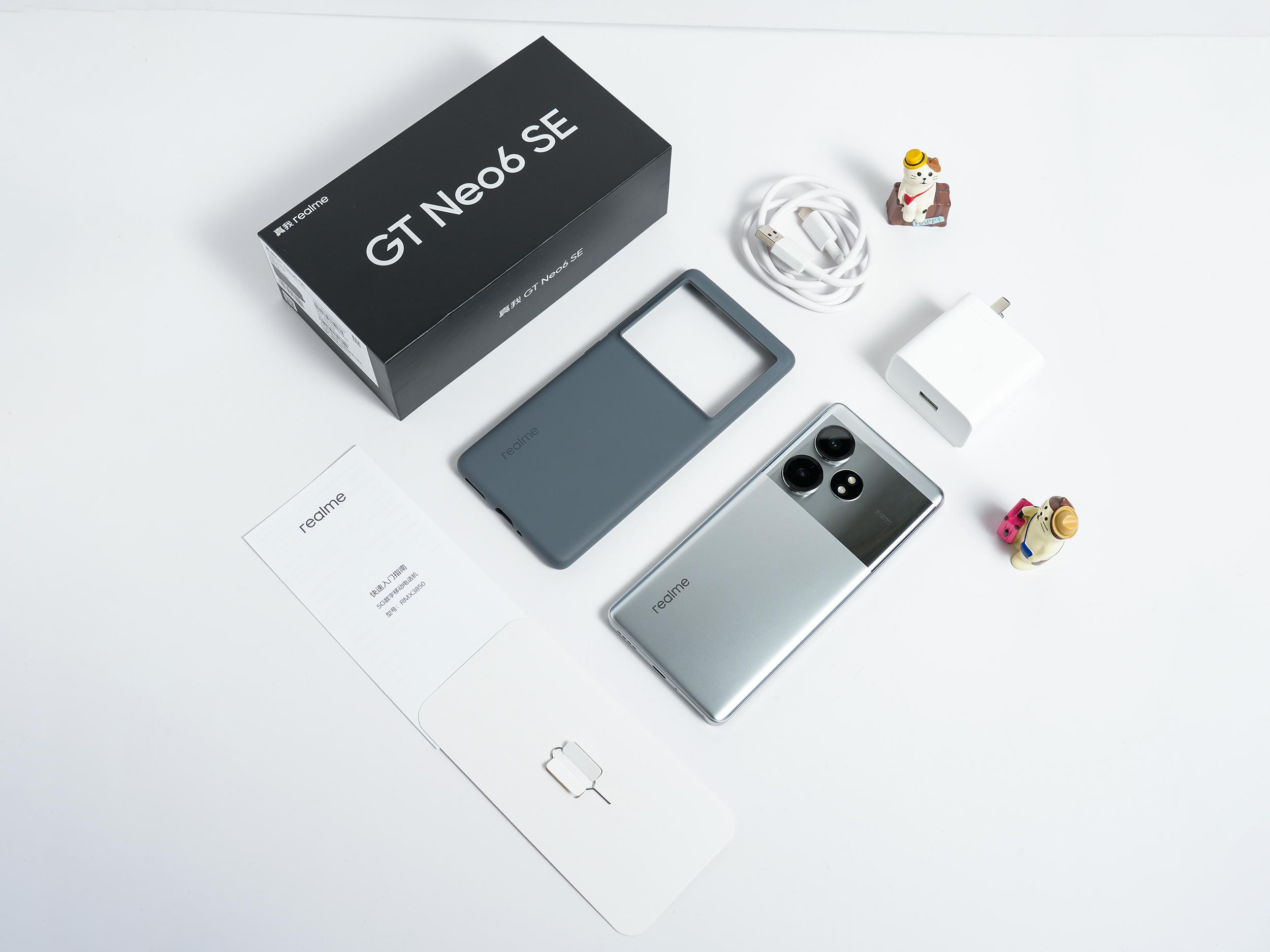 包装盒内配件信息,真我gt neo6 se延续传统自带原厂保护套,以及出厂贴膜已贴好,对于消费者非常友好,手机到手即可使用节省了用户使用成本。