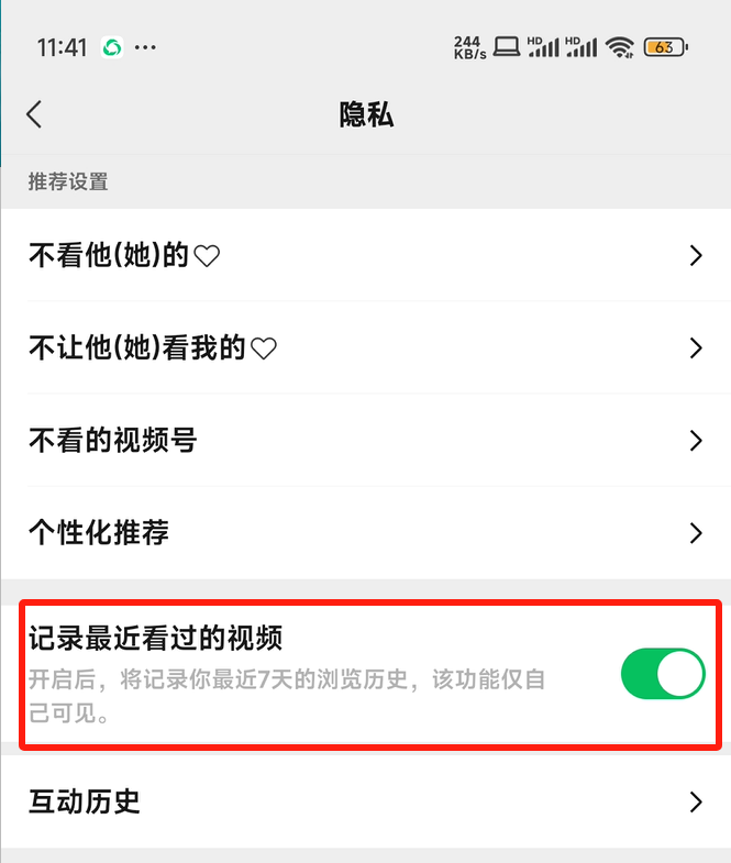 打开后,将记录用户最近7天的浏览历史,该功能仅用户自己可见。