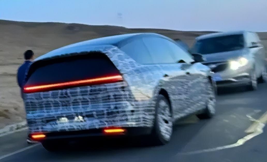 从照片中可以看到,该车的车头采用了mega类似的流线型火车头设计,配有家族式无断点星环led灯带,进气格栅的部分则是l系列的设计语言,a、b、c柱均采用熏黑涂装和一体化设计。