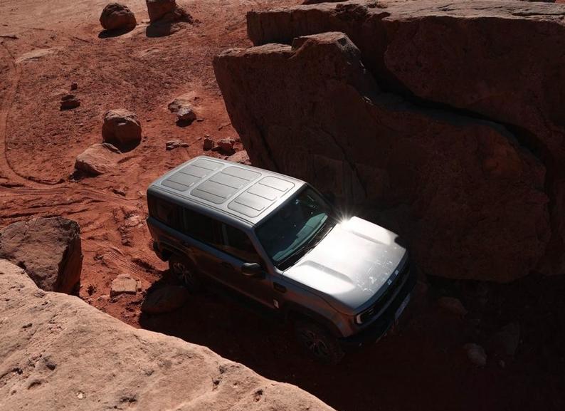 内饰方面,新车配备10.25英寸全液晶仪表以及12.8英寸双联屏设计,除了常规的车机功能外,可以在屏幕上直接观察车辆的驾驶(越野)属性,包括胎压、温度、海拔、车身角度、涉水情况等。全新bj40刀锋英雄版采用了三块可以拆卸的顶棚设计,并且拆卸下来的顶棚是可以全部收纳到后备箱中的,可玩性较高。