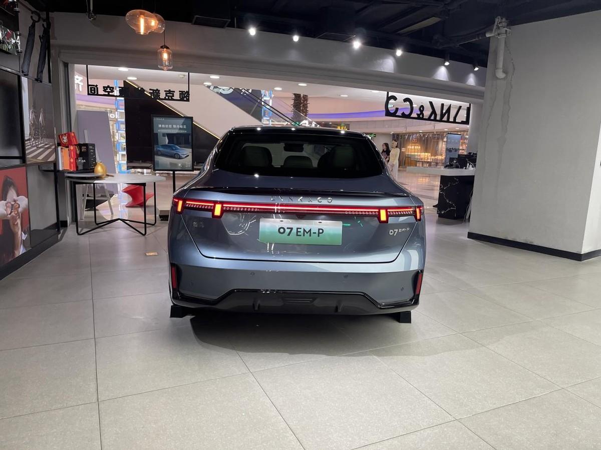 同样是基于cma evo架构打造的产品,领克07 em-p和领克08 em-p一样,都是采用了这种非常个性、非常时尚的设计语言,h型的日间型灯看上去非常个性。它也会采用分体式的大灯组设计,下方才是它的远近光的大灯,整个前脸营造出来的视觉感受也是非常运动的。