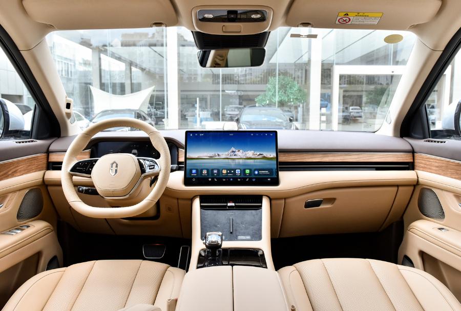 理想l6的车内设计及布局与同家族车型没有太大差异,车内用料保持了一如既往的档次感,中控台,门板内侧,扶手台区域基本都由软性皮质面料包裹,实际触感柔软且舒适。中控台上方设置有双15.7英寸的大尺寸屏幕,看上去相当提气,屏幕采用窄边框设计,操作灵敏,观看以及触控都比较便利。同时该车搭载高通骁龙8295p车机智能芯片,支持手势控制,多指飞屏操控、5g网络等高端配置,可为用户带来高品质的使用体验。