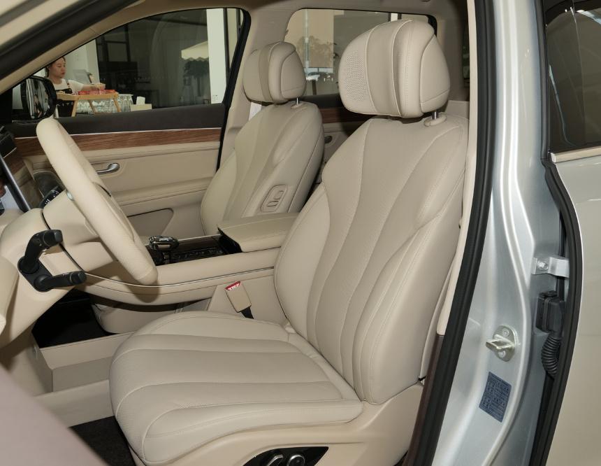 理想l6车内座椅采用真皮面料包裹,前排座椅造型宽大,内部填充物厚实且有弹性,与身体的贴合度较高。功能方面支持座椅加热/通风/按摩,前排座椅电动记忆等。