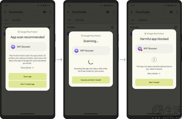 为了保护用户,去年秋季谷歌对2017年上线的恶意软件保护程序google play protect进行了功能升级,将识别范围从google play store上的应用扩展到通过侧载安装的第三方应用,其能够扫描侧载应用是否包含恶意代码。只不过这种方式起到的效果相当有限,因为做恶意软件的团队同样也在不断进行技术升级。比如央视最近就曝光了一种仿冒app诈骗,就是通过动态加载修复补丁的方式将正常app转换成诈骗app。