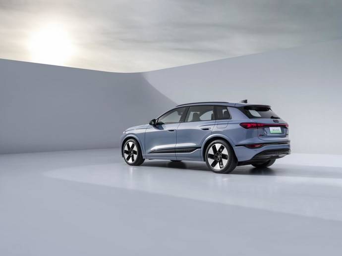 造型上,奥迪q6l e-tron的车身线条流畅灵动,锋利的两段式腰线搭配宽厚车肩,肌肉感十足;下压式车顶与倾斜d柱的组合,则为新车注入了强烈的动感与活力。