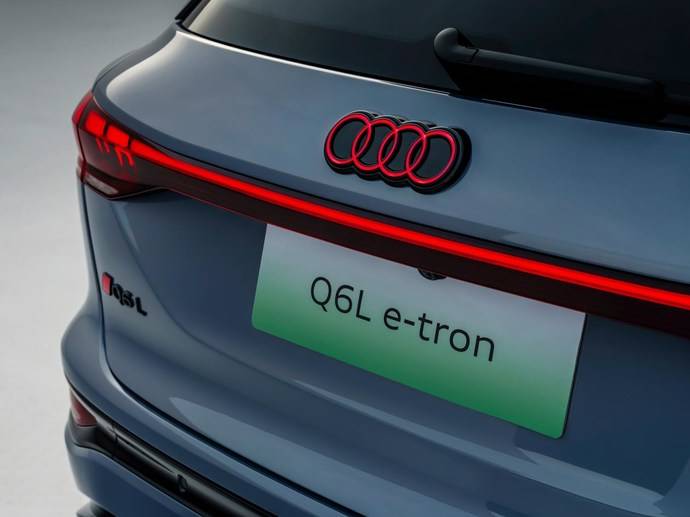 为了进一步营造电动科技氛围,国产奥迪q6l e-tron还创新加入了可点亮的奥迪四环logo和格栅氛围灯带,后者可与日行灯共同呈现出近似贯穿灯带的视觉效果,这些都是海外版本所没有的。