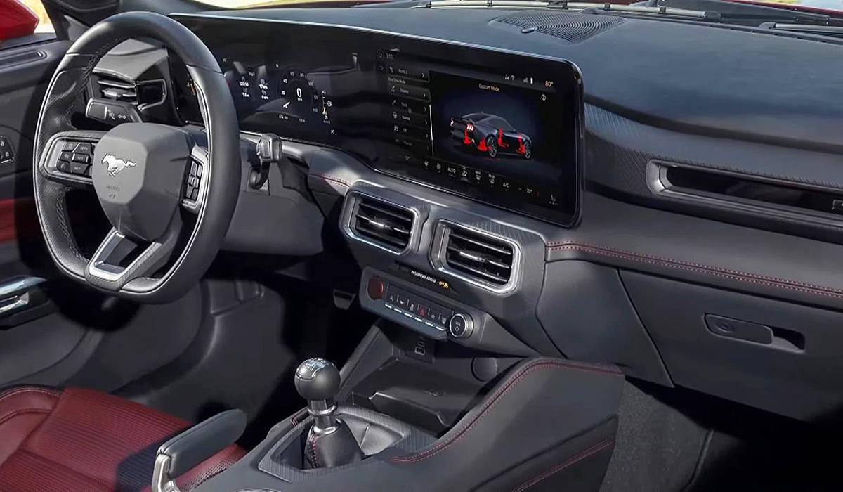 在内饰上,全新一代mustang换装了当下流行的贯穿式联屏,搭配以三辐式多功能方向盘和采用不规则形状设计的空调出风口,让新车的内饰在具备鲜明时尚感的同时,更增加了不少的运动气息。值得一提的是,全新一代mustang依旧保留了机械式球头换挡杆和一定数量的实体物理按键,让新车保留了应有的机械质感。