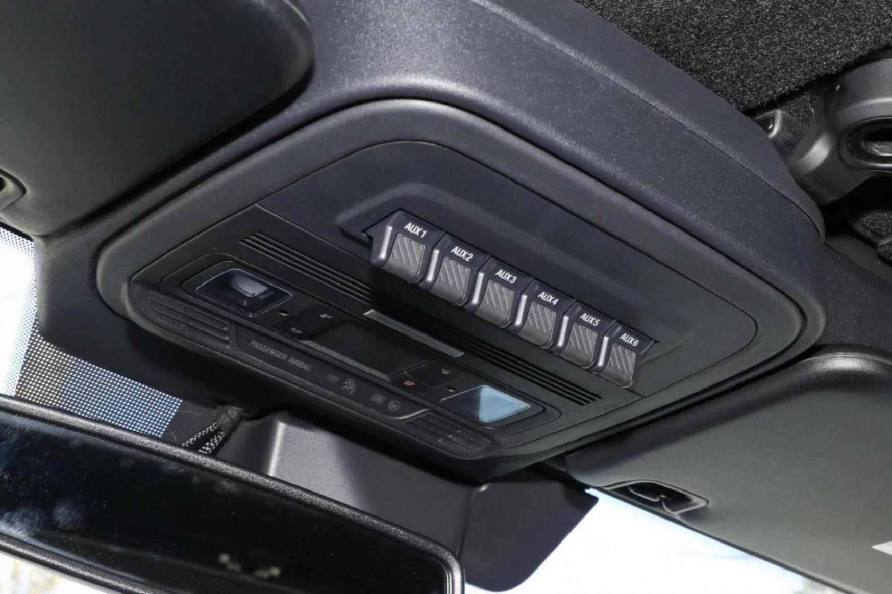 首先越野包1提供了重型模块化钢制前杠,还有飞航拨杆预留顶置式扩展开关。这是墨钻(墨钻大脚版)版本的专属选装。前保险杠升级为我们统称的竞技杠之后有很多作用,首先可以提升防剐蹭能力,并且必要的情况下,竞技杠可以充当猴爬杆的同时提升极限攀爬能力。飞航拨杆预留顶置式扩展开关提供6路电器插口/改装开关预留,方便不说也比后期自行改造好看了一万倍。