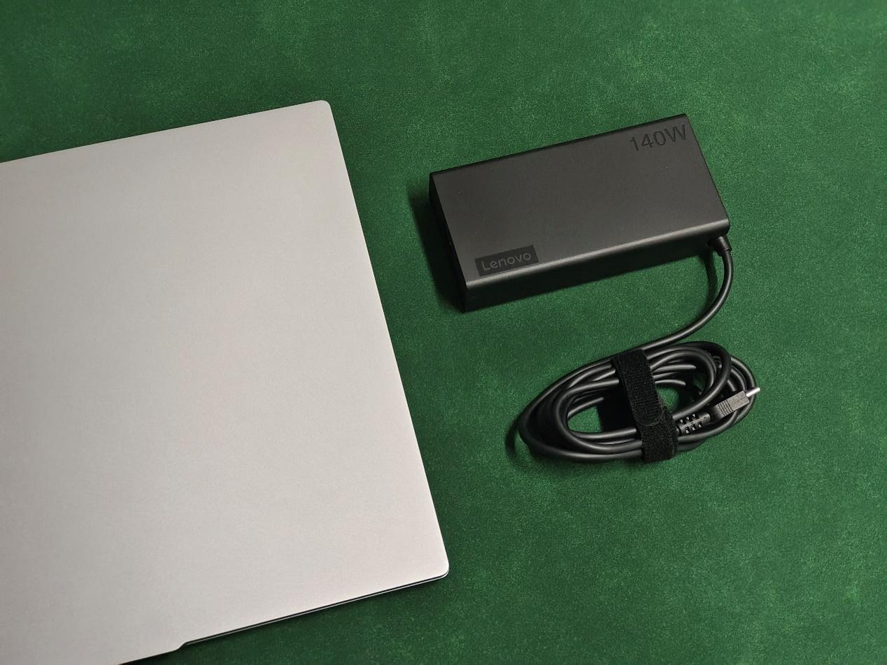 原装 140w 输出功率适配器的体积也很小巧,重量 320g 左右,旅行重量妥妥控制在了 2kg 以内。
