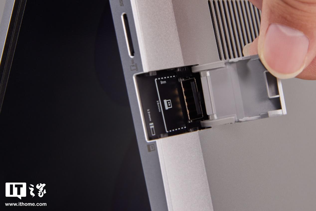接口方面,联想昭阳 x7 ai 高能本采用了 3a2c 的数据口组合,其中一个 a 口为隐藏式 2.4g 接收器收纳口,hdmi、rj45 网口和 micro sd 卡槽也都有,甚至还加入了一个 gx oculink 显卡扩展坞接口,真正做到了多且全。