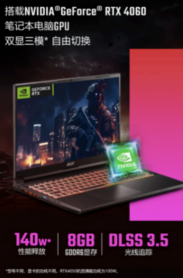 据介绍,这款笔记本配备 10 核心 16 线程 amd 锐龙 7 7840h 处理器,配备 140w rtx4060 显卡,采用 16gb ddr5-5200mhz ram 及 512gb pcie 4.0 ssd,搭载“双风扇 七热管 四出风口”散热方案。