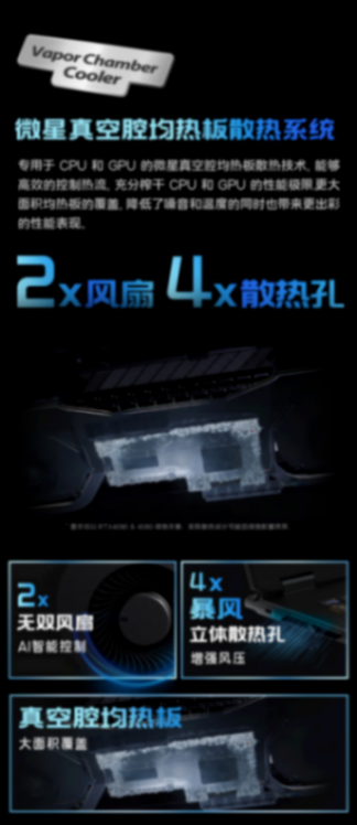 绝影 18 选用酷睿 ultra 9 185h 处理器与 rtx 4080 / 4090 独立显卡,搭载微星真空腔均热板散热系统,双风扇四出风。