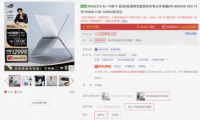 rog幻 14 air:amd r9 8945hs处理器,rtx4060独显,32gb内存 1tb ssd,2.8k 120hz rog星云屏,73wh大电池,15.9mm薄 1.5kg轻机身,到手价12969,好评率97%。