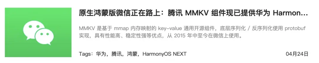腾讯冷不丁在程序员交流平台里边,发布了最新版的mmkv组件,并宣布该组件正式支持harmonyos next。