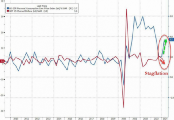最新发布的美国季度通胀数据显示,美国第一季度核心pce物价指数季调后环比折年率初值为3.7%,预估为3.4%,前值为2.0%,为一年来首次环比加速。