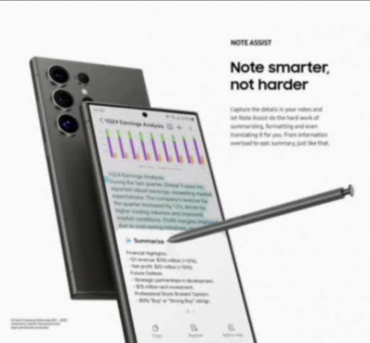全新的galaxy s24 系列还将带来“笔记助手”(note assist)功能。通过这一功能,用户可以获得更简洁明了的信息摘要,还可以进行翻译笔记等繁琐操作。