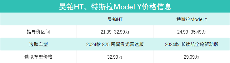先来看看两台车的价格,昊铂ht全系指导价区间为21.39-32.99万,该车定位为中大型豪华纯电suv;特斯拉model y全系指导价区间为24.99-35.49万,该车定位为中型suv。其实能看出昊铂ht和特斯拉model y的产品定位存在差异,前者主打豪华,后者主打科技,但两台车的价格存在明显交集,自然也存在竞争关系。