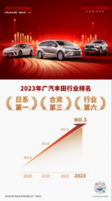 2023年广汽丰田销量达901025辆,在合资厂商阵营中,力压上汽通用,摘得季军,成为唯一进入合资前三甲的日系品牌;
