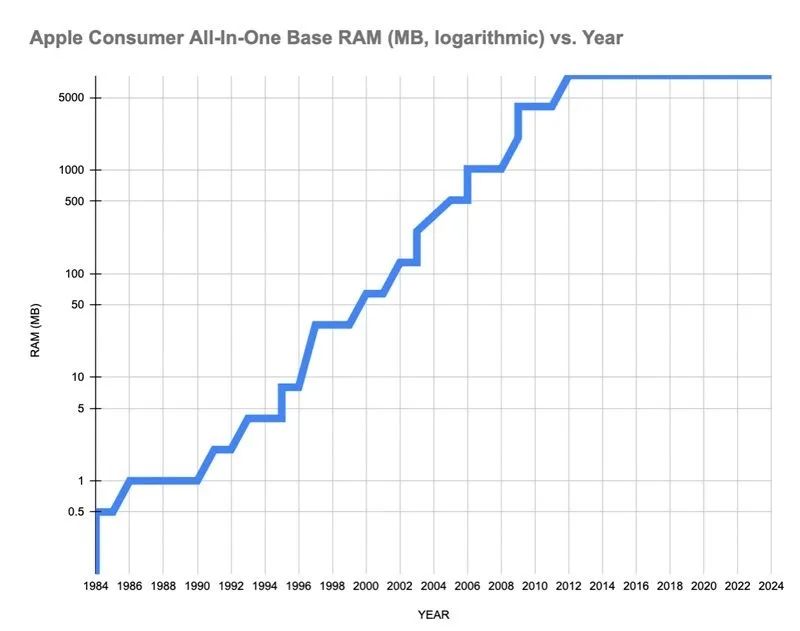 而最近据david schaub在 mastodon 平台上发布分析论文,表示自从库厨子掌舵苹果公司之后,苹果基础款 mac 的内存升级周期就已经停止了,乔布斯之前好歹过阵子会给大伙升级一下,而库厨子仅升级过一次。