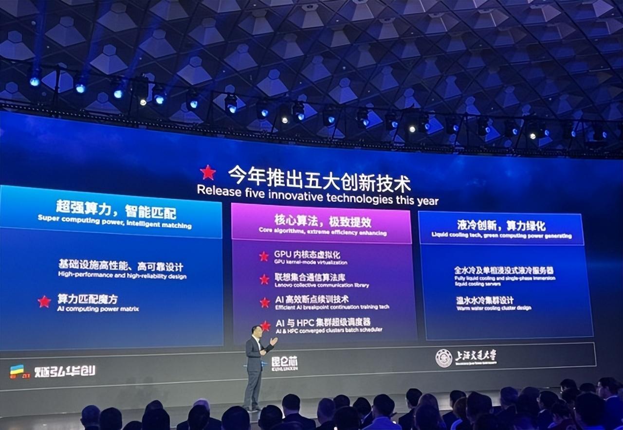 面对挑战,联想毫不犹豫,抓住机遇,推出了一横五纵的智算新战略布局。此番布局,旨在通过硬件、软件、算法、生态的全方位协同创新,让算力基础设施跟上大模型的脚步,满足千行百业算力需求的多元化诉求。