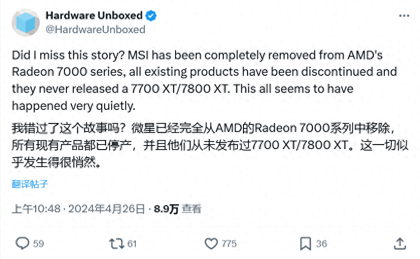 4 月 27 日消息,近日有媒体发现微星(msi)j9com官网很难找到 amd radeon 7000 系列 gpu 产品,引发了网友的广泛讨论。