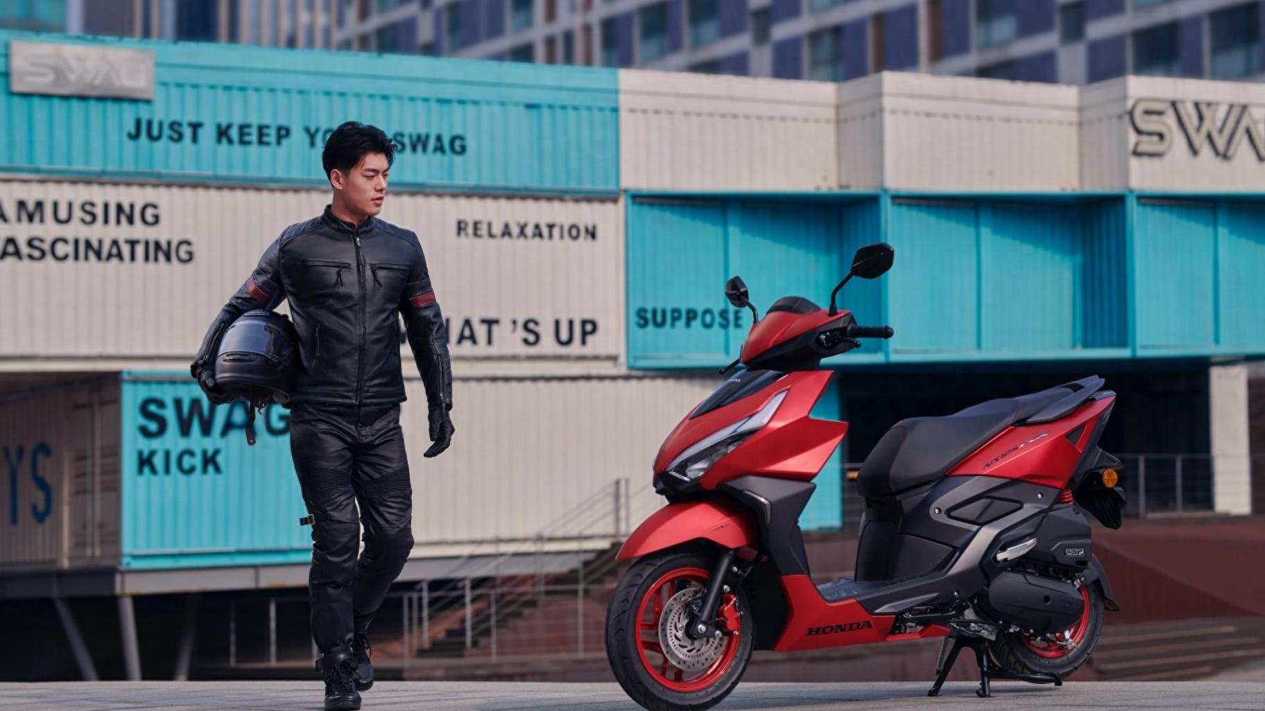 不过我想吐槽一下,如此凌厉造型的小踏板是不是不应该找个女骑当模特,而不是图中高大的男骑士呢?不知道是新大洲还是本田的理工直男思维作祟。