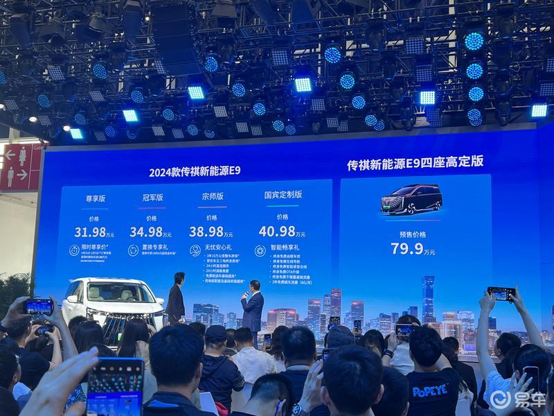 在今日开幕的北京车展上,2024款传祺新能源e9正式上市,售价区间为31.98-40.98万元。据悉,2024款传祺新能源e9在原有版本之上,新增31.98万元的尊享版和40.98万元的国宾定制版,其中4月25日-5月5日下订尊享版还可以享受限时购车价29.98万元。