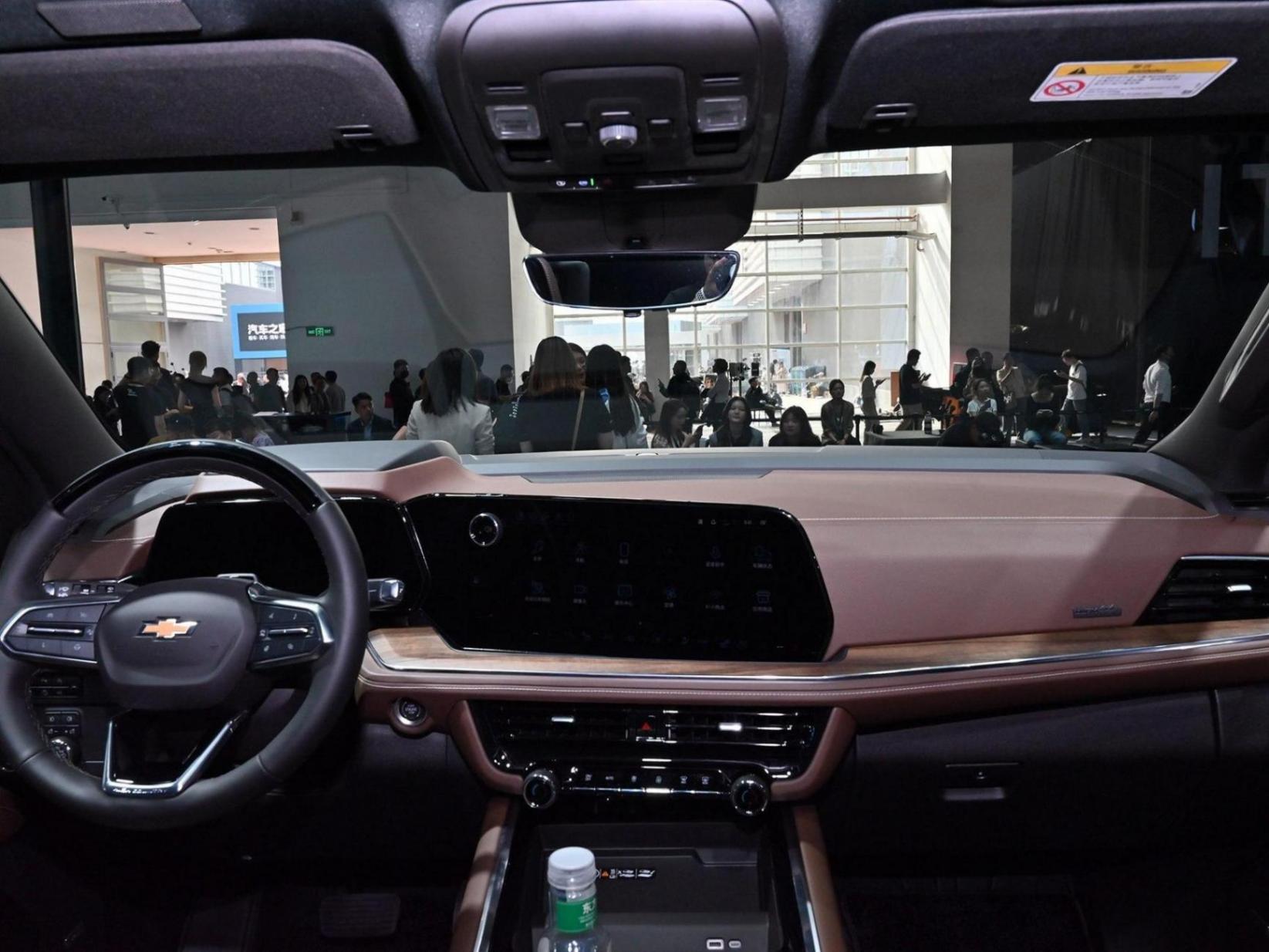 车顶有着大尺寸的扰流板,后保险杠部分除了镀铬条,还有双边双出排气增,添了一丝运动感。在内饰部分,新车则是鲜明的最新家族风格,其实与国内即在售或即将推出的雪佛兰相似,只是各方面都加大了一号,双大尺寸液晶呈错落式排列,向驾驶的偏转中控台面,偏转幅度倒是并不算大,大面积皮革缝线工艺覆盖,贯穿镀铬条木纹面板填充,也都不会缺席,座椅中央当然是非常宽大的平台化扶手设计,符合美系车型的定位,宽大舒适座椅,大面积打孔还有特殊的刺绣标签,与外观形成对应。