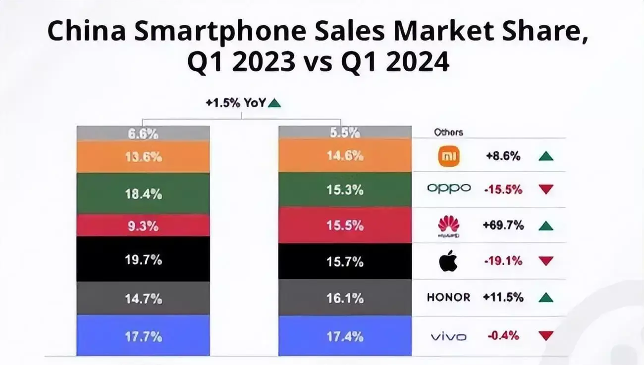 哈喽!你们猜怎么着?咱们这里头,华为和苹果就是高端市场的老大老二,而荣耀啊、oppo呀、vivo这类牌子就在中低端市场上厮杀得厉害。这样一来,小米在国内市场就有些喘不上气了,特别是面对华为和苹果这两位大哥,可谓压力山大。而荣耀、oppo、vivo在中低端市场也是打得火热,对小米来说的确是个不小的挑战