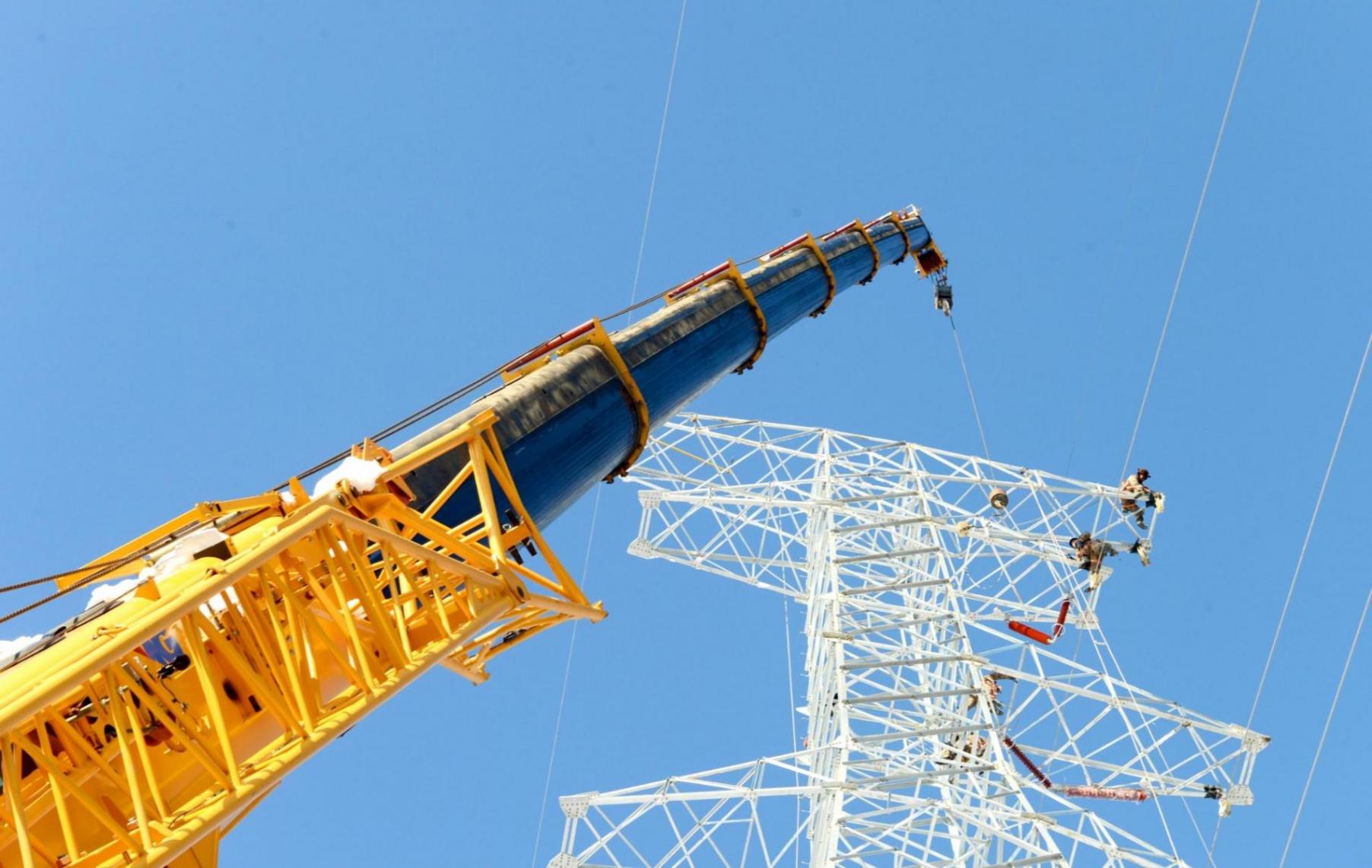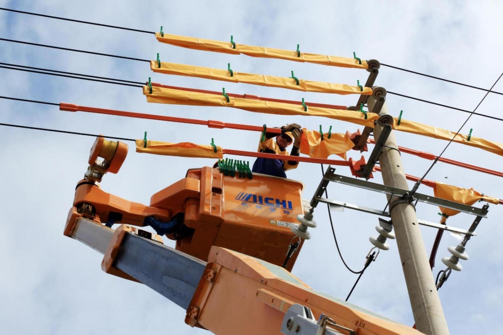 国网白山供电公司为沈白高铁建设迁改220千伏松长甲线11号至14塔(央广网发 国网吉林省电力有限公司供图)