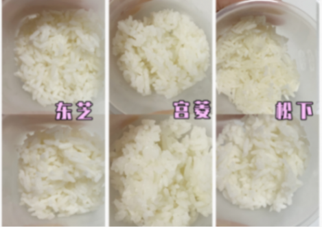 东芝电饭煲焖出的米饭存在细微的差异,表层的米饭有点干,不是特别的水润,但是下面的米饭则有点软,非常的水润,吃起来米饭整体还可以,建议商家对电饭煲的加热均匀度进行改善,使焖出的米饭表现更加的一致。而松下电饭煲焖出的米饭存在的差异比较大,因为上面的米饭非常干,下面的米饭则存在夹生的可能,米饭吃起来整体要差一些,希望商家可以对电饭煲的加热均匀度进行优化,使米饭的口感比较好。