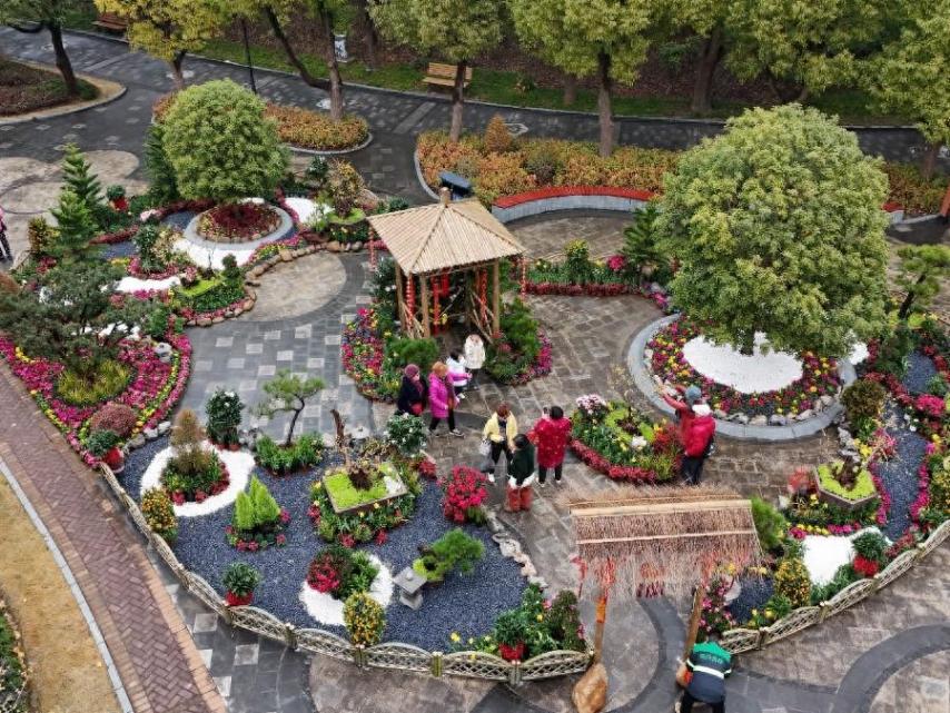 疏影横斜,暗香浮动。真如公园的蜡梅已进入观赏周期,从空中俯瞰目之所及,朵朵明黄色的小花在寒冬里唱起了主角,或爬上枝头,或在小品中“拗造型”,尽情倾吐着芬芳。园中园、悬铃木广场、蜡梅广场等区域,更是蜡梅展的热门观赏点,游客络绎不绝,驻足观赏或拍照留念,尽情享受这难得的冬日美景。