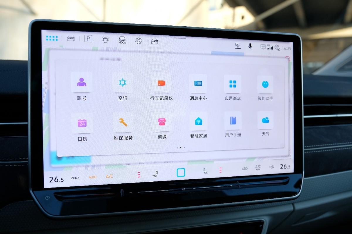 全车最大的亮点莫过于这块15英寸中控屏了,屏幕尺寸非常硕大,车机搭载了id.os 2.0智能系统,新增的全新id.mate智能助手,具备自定义唤醒词、主副驾驶位唤醒、连续语音控制、可见即可说等功能,提升了车辆的智能化水平,为驾驶者提供了更便利的操作体验。