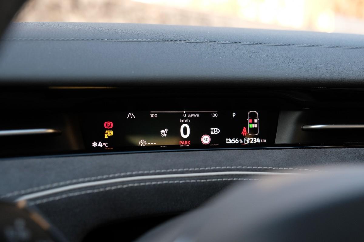 方向盘后方镶嵌着一块细长条状液晶显示屏,别看它的尺寸小,屏幕拥有高分辨率,所显示信息也比较丰富,有种麻雀虽小五脏俱全的既视感。