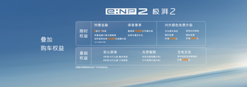以质造为基石,铸就卓越品质,e:np2极湃2进阶版质造指导价18.98万元,为答谢广大用户的长期支持与厚爱,特别推出限时惊喜价15.98万元。此外,为了满足不同消费者的个性化需求,精心打造了“舒享音乐舱”和“零感科技舱”两个升级包,升级价分别为10000元。广汽本田还特别准备了一系列诚意十足的限时购车权益,让用户无忧享受全新的纯电乐趣。