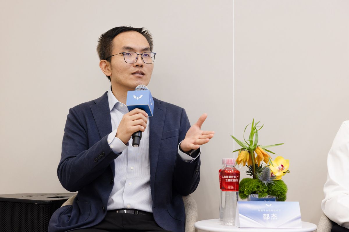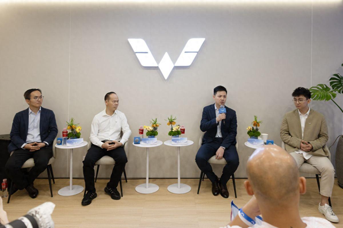思行:各位朋友们早上好,还有几家媒体朋友没到,先和大家自我介绍一下,我是思行,负责五菱市场的工作,介绍一下各位领导。第一位是产品创业中心和营销中心的总经理赵奕凡总,首席技术官,刚才发布会上聊的天舆架构的底盘,主要就是黄首席负责,智能平台首席技术官,去年的神炼电池和今天和大家见面的2c快充都是邵杰来负责的。