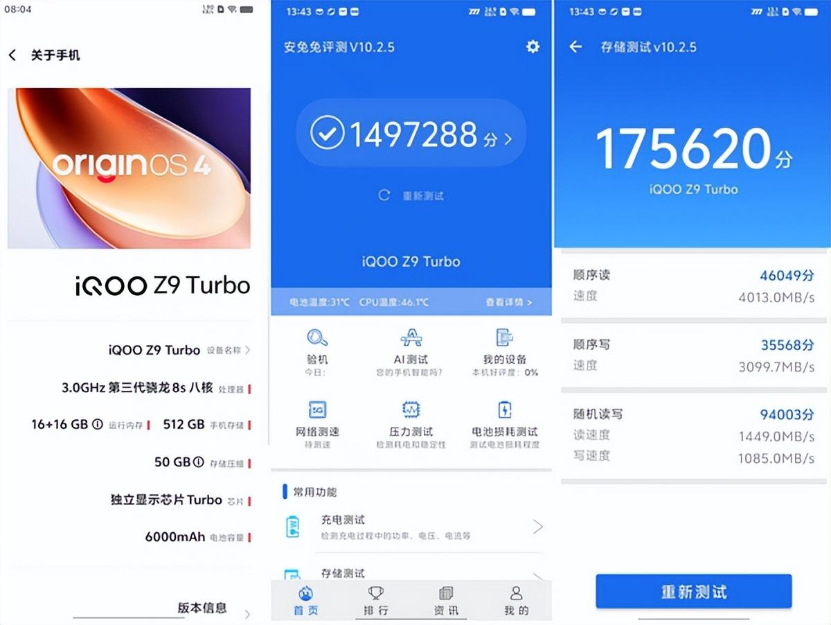 首先,第三代骁龙8s芯片作为iqoo z9 turbo的心脏,提供了强大的动力支持。与第三代骁龙8旗舰平台相同的cpu架构,确保了其在处理速度和多任务处理能力上的出色表现。经过iqoo与高通长达289天的联合调校,该芯片在性能与功耗之间达到了出色的平衡,而独显芯片turbo的加入,更是为iqoo z9 turbo的性能表现锦上添花。iqoo z9 turbo能够突破原生帧率限制,带来更加顺滑的画面表现。在安兔兔实际跑分中,iqoo z9 turbo的跑分达到了1497288分。